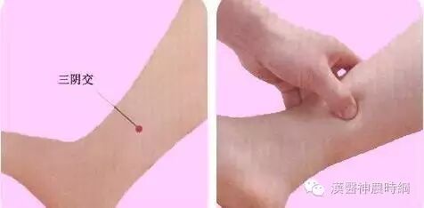 按揉三阴交,有助于打通人体淤塞,保养子宫和卵巢,调月经、除斑、祛皱、祛痘,治疗皮肤过敏、皮炎湿疹。经期前3天开始每天按揉三阴交,坚持3个月,可缓解月经不调、痛经。