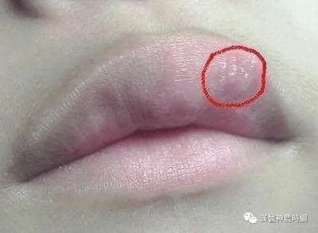2、上唇或是下唇起疱