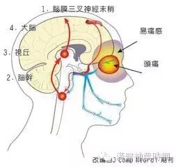 椎动脉血栓形成所致的头痛多位于耳后,基底动脉血栓形成所致疼痛则投射到枕部,有时也可以出现在前额。颈动脉分流所致疼痛则投射到眼以及前额,颅内动脉瘤也可以引发牵涉痛,后交通动脉损伤多投射到眼部。