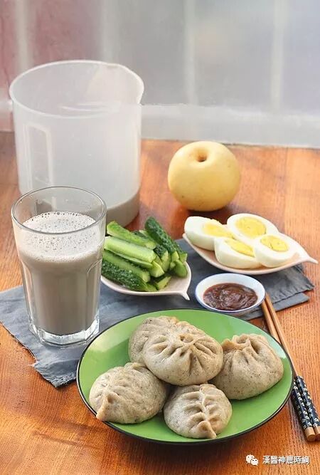 14、平时打豆浆过滤出来的豆渣都冷冻保存,用来放到馒头包子中,这样既不会浪费又有营养,昨晚做的芹菜肉黑豆渣包子,芹菜茎叶全部留下洗净没有焯直接切成末放入肉馅中,这样营养一点不流失,而且芹菜味浓;早上又打了黑豆浆,还有煮蛋,黄瓜蘸酱!