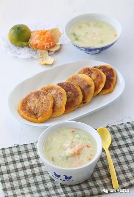 13、晚上蒸了地瓜趁热放入糯米粉用勺子搅成团,豆沙馅冰箱里始终有做好的,早晨起来做了包有豆馅地瓜饼,又煮了虾滑粥,里面放了芹菜和胡萝卜!