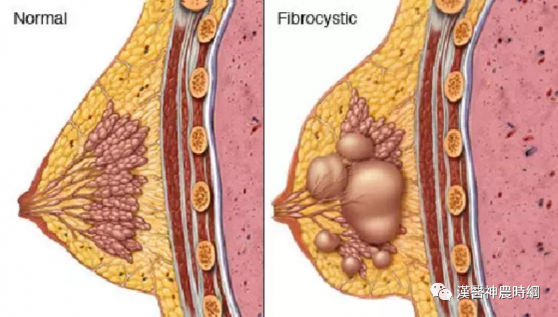 (2)冲任不调型:乳房有肿块,经前或经期疼痛加重,经行后减轻或消失,经期多后延,经痛不剧,经量少,身倦无力,腰酸肢冷,少腹畏寒,日久失治者,少数可发生癌变。