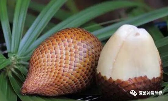 蛇皮果(拉丁学名:Salacca zalacca(Gaertner)Voss)英文名为"salak"或"snake fruit",又名沙叻,是棕榈科蛇皮果属植物,是东南亚著名水果。喜热带湿润气候,高温高湿是其生长发育的重要条件。生长最适宜条件是,年均气温高于22℃,最冷月平均气温18℃以上,相对湿度在85%以上。蛇皮果非常美味,口味清甜,爽口。分布于印尼、我国华南地区、川渝部分地区。