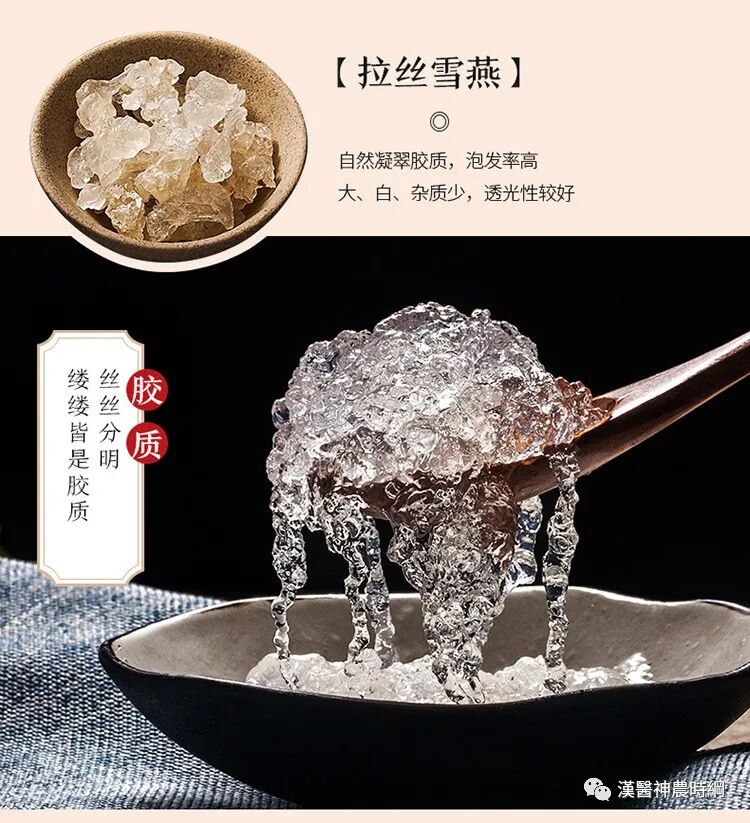 当然了,因为它们的营养成分特别丰富,所以这两种物质的价格都还是蛮高的。市面上雪燕的品种是有很多的,常见的有印度雪燕,缅甸雪燕等,这两种燕窝的原材料其实是不一样的,比如说缅甸雪燕是由树髓分泌物制作而成的,而印度雪燕则是由树胶制作而成的,印度的拉丝雪雁其实大部分都是从缅甸进口的,根据燕窝的筑巢地不同,可以将燕窝分为洞燕和屋燕这两种,其中洞燕因为受到矿物质等一些因素的影响,所以颜色是不一样的,又可以分为黄艳,白燕,鸿雁等,但是屋燕一般只有象牙白这一种颜色。