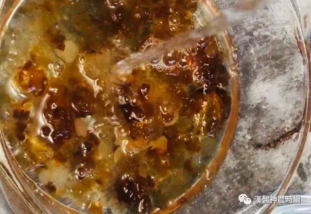 5.备炖锅,倒入桃胶和刚好没过桃胶的清水小火炖煮20分钟