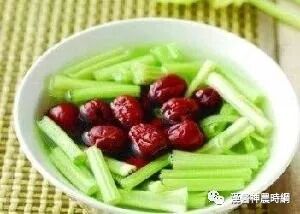 芹菜+红枣:芹菜性味苦凉,具有平肝清热、祛风利湿的功效。红枣性味甘温,具有补脾胃、生津液的功效。芹菜、红枣都含有丰富的铁,二者搭配煮汤食用,有滋润皮肤、抗衰老、养血养精的作用。