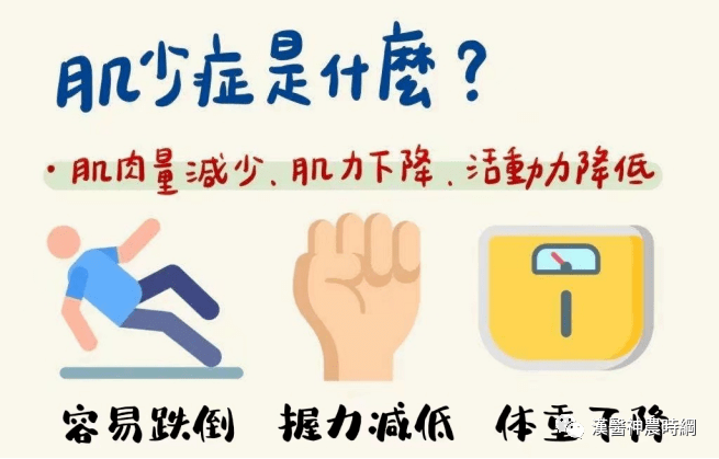 肌少症是指肌肉量变少且肌力不足,导致四肢无力容易跌倒,严重时会失能,甚至增加死亡风险。