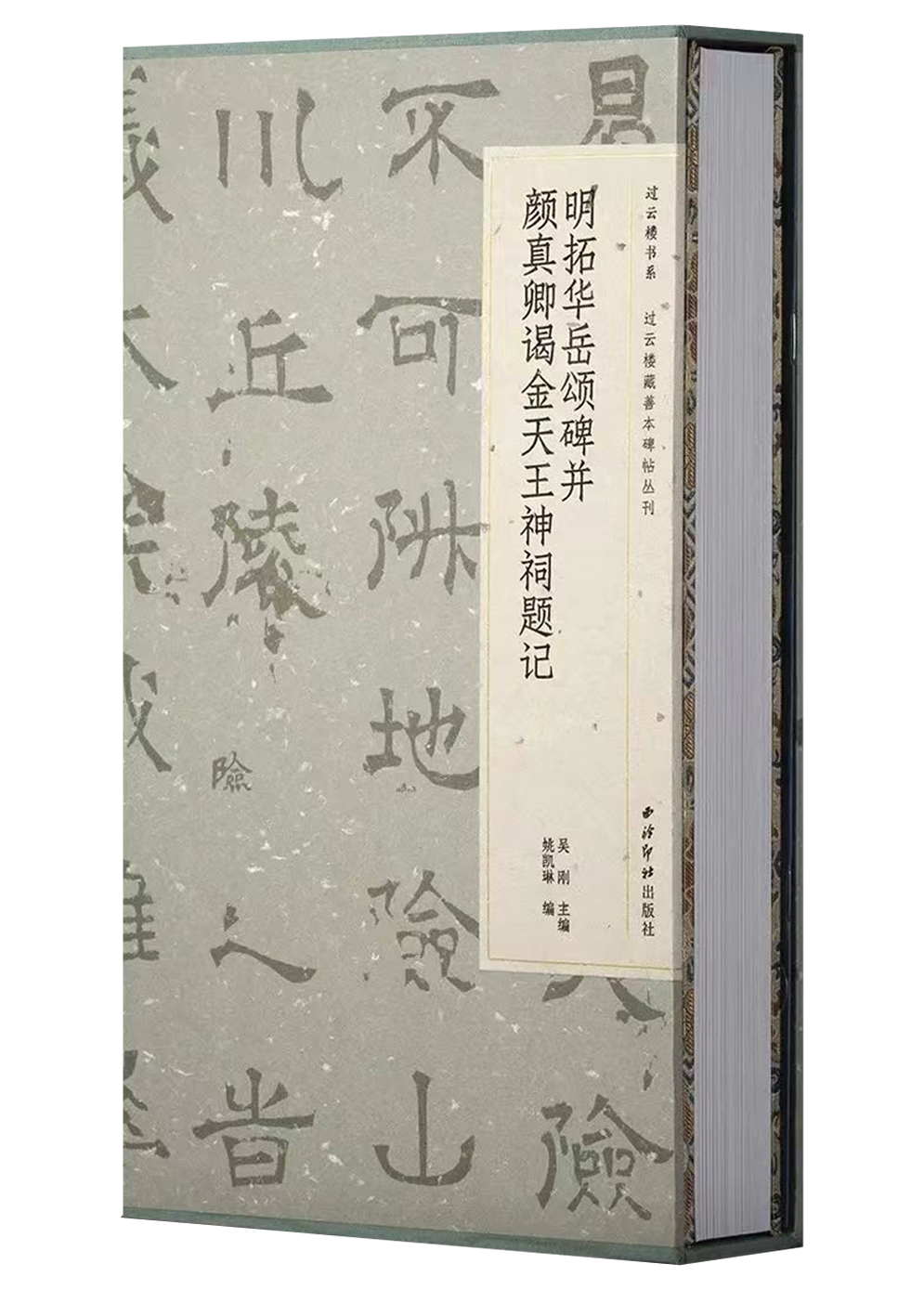 此次出版的过云楼藏《华岳颂碑》拓本堪称明拓善本,浓墨精拓,纸墨俱老,形神相合;字口深峻,神完气足;椎拓精良,装潢尚好;收入题刻也较他本为多。装潢为剪贴裱经折装册页,共计 45 开。装裱顺序为先是《华岳颂》正文,后为历代题记。颜真卿书《谒金天王神祠题记》装为每页 2 行,每行 3 字,合计 8 开。此外尚有 3 处题跋和多处校记。