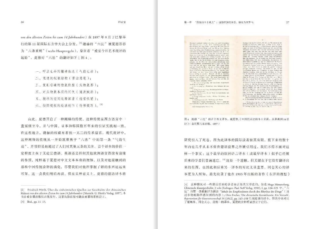 经过冈仓天心、劳伦斯·宾扬、喜龙仁等多位汉学家的转译,又被留学海外的陈师曾、滕固、刘海粟等人从日语、德语、英文等语言译回中文,并被王国维等应用在学术研究和艺术实践中,进一步奠定了谢赫“六法”在20世纪中国艺术理论中的核心地位。