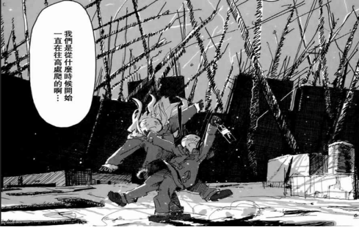 然而,少终绝非一部普通的废萌之作,表面的平和终究只能冲淡沉重的氛围,而其悲剧的内核从未改变。从一开始,少女们携带的口粮就只够支撑一段时间,而在后续的篇章中,形式也未见转机。读者们能做的只有跟随少女们前进,见证文明的遗迹,作者用无时不在用场景渲染情绪,眼前苍凉败落化作绝望丝丝缕缕,不安此间暗自发酵。