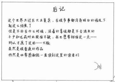 作品的背景设定为战争后文明崩坏的末日世界,这样的后启示录题材,时常会注重于通过真实,残酷的内容以揭露人性的阴暗面。但作者つくみず让少终跳出了套路,以单元剧的形式向读者展示少女们行程中的一幕幕,同时画风也软萌可爱,再加上千与尤温馨的对话与互动,萌元素可以说贯穿了整部作品。