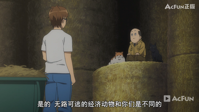 这部番的一大亮点是从畜牧业出发展开的对生命的讨论。在本作中作者花了大量的笔墨讲述主角与一只小猪发生的故事,以此引出畜牧业中夺取动物生命的话题。对于从未接触过畜牧业的城市居民而言,一只自己亲手养大可爱的小猪变成一块又一块的五花肉,这件事相当的难以接受,而这样的事无时无刻都在发生。小时候我养过一只鸡,后来有一次生日家里端了一盆鸡肉上来,给了年幼的我巨大的震撼(但是真香啊)。但正如《泽塔奥特曼》中提到的那样:因我而受伤的生物,绝对不要忘记。记住自己恰肉的理由,并满怀感激的记住这些动物。因此将肉彻底的吃完,不要浪费,才能不辜负动物们为自己的牺牲。