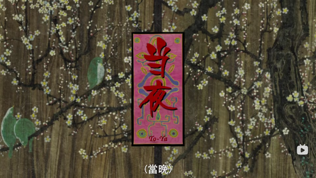 看完怪化猫全片,你能感受到它似乎与00年代以来的动画格格不入,反而更有种戏剧的感觉。戏剧转场是需要拉下幕布,完成场景的布置。如今的动画也常常使用某种风格化的幕布或揭示当集或预告下一集的标题,但使用的次数很局限。而怪化猫单集使用了不止一次的类似手法来实现转场效果。如下图,使用幕布来展示时间的推移。怪化猫的这种做法并不常见,比如说此处时间的推移可以通过白天到黑夜的动画效果来实现,可以直接切通过人物的台词来揭示。这种手法刻意的普遍的运用让人猜测是对戏剧的戏仿。