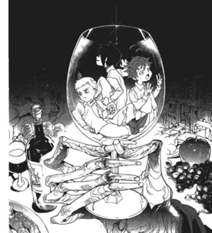 翻开漫画的第一页,孤儿院中充斥着属于儿童的纯真与几乎溢出屏幕的幸福感。伴随着主人公艾玛的活动,我们也见到了另外的主要人物,雷和诺曼,以及所有孩子的“妈妈”伊萨贝拉。结束了学习之后的自由活动中,也出现了第一个谜团:不可跨过的围栏与不可靠近的大门。但这个谜团很快就得到了解答——吃人的鬼。至此得到了第一条主线,逃离孤儿院。