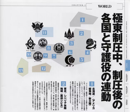 而这部番本身的独特之处还远不止这一点。既然以设定详实文明,那就该首先讲讲这部番中的世界了:曾经的人类借助神的力量攀上天顶,但又因互相斗争从而失去了神力,掉落回只有神州能生存的地球。为了有朝一日得以重返天界,人类以记载上代历史的“圣谱”为基本进行“历史重演”,希望通过复演历史寻得返回天界的方法。曾也有作为镜像的重奏神州,但是掉落下来与原本的神州合二为一。(PS:但既复演日本、又复演欧陆这种混合复演,真的能寻得返回天界的方法吗?让人捏一把汗)而各国行使行政、军事POWER的机关是教导院,也就是学校,而代表国家冲锋在第一线的也就是学生了。而主角所在的三河和武藏因为对重奏神州的毁灭负有责任,被施加了总总限制,如学生年龄不得超过18岁云云。(PS:但确实因为有这个设定,才有美少女和美少女看,好设定)。但在被压迫的主角故乡之上,还有着世界即将迈入的大危机——因圣谱1648年之后皆为空白而来的“末世”。