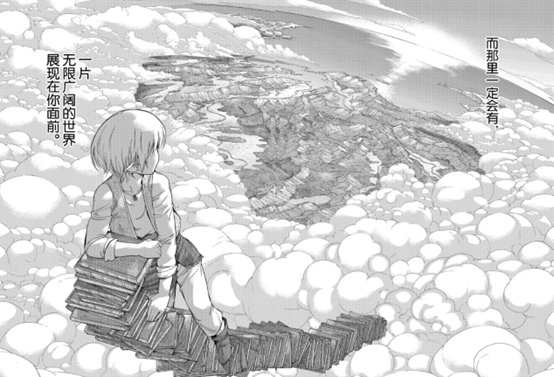 漫画里有很多作者的观点输出,关于“书”作者对其进行了很多探讨,最为经典的便是“小说失格”这一篇。个人拙见,漫画里所讲的书不单单是书,甚至不只是书里的知识或是以书为载体的小说,它更像是人的思想人的意识。而这个篇章便是在讨论一个可能会影响群众的小说是否还要继续出版。起初的一些论调很像是很久之前人们对游戏是否是“毒品”的争论一样,我本是不以为意的,但漫画却更进一步地讨论着,直到最终引出开头便提到过,毁灭了一整个民族的“黑之书”。可能作者从不是想讨论我们该不该出版一些有争论的图书(或是其他任何东西),也许真正想讨论的是面对这些争议我们如何分辨他们的目的,如何让自己、让群众能获得真正的“书”,而不是接受被人有意篡改的、充满真实谎言的“书”。作者也有通过主角西奥之口讲出自己的破局之法:博闻而后广识。但就像是先前另一人提出的让人们多学习的弊端一样,这招顶多只能让自己不被带偏而不能使所有人都不被带偏,对社会的影响依旧存在。这里我就不用我毫无社科经验又核桃仁大小的大脑发表意见了,毕竟我也没有什么想法,但每每在写稿时翻到这一章时,我总是在反思,反思自己是否足够博闻能让自己可以判断,自己又是否因为冲动加入了所谓正确的队伍,自己有是否已经落入由他人编织而成的名为欲望的陷阱。总之作者在这个漫画里一直有在输出自己的观点,大多数时候也并没有给出明确的答案,就像是给自己,给读者留下一些回旋、思考的余地一样,在看的时候我也是反思了很多,感兴趣的朋友也可以来看这个作品,真的很好看。
