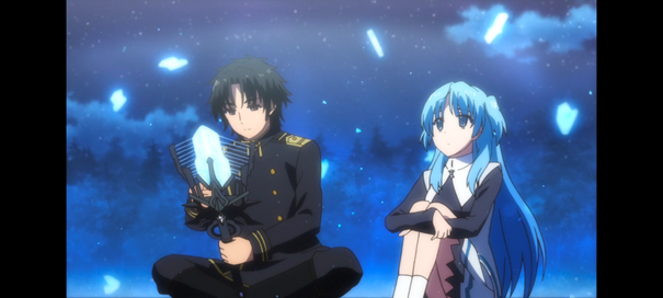 《末日三问》本质上是一个关于幸福的故事,一个跨越时间从旧世界到来的少年和新世界的少女,一个背负着灭族之痛的人类和一个为死亡而生的妖精在天上之森邂逅的故事。有一说一,这部番用语言很难描述,特别是在我的文笔特别菜的情况下。这部作品的演出并不算多么震撼,但如果能投入自己的感情才能发现这部番的韵味。