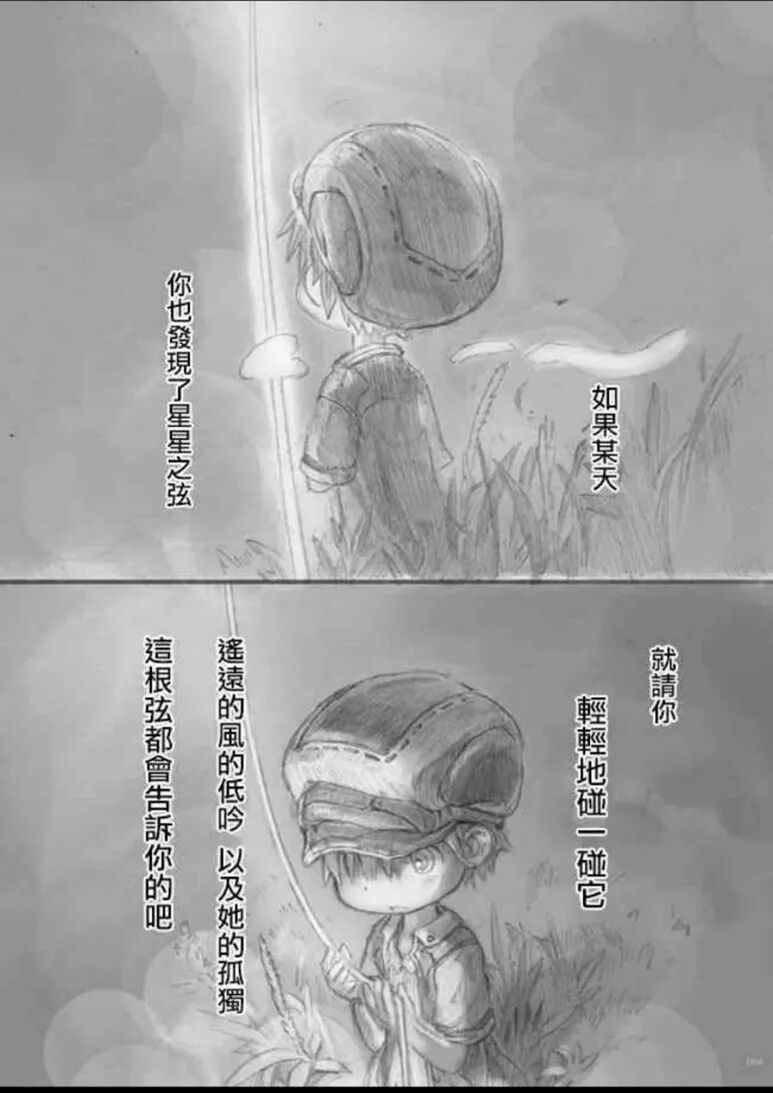 土笔最后为我们展现的,是无边无际黑暗中,那几不可见的希望萤火,飘渺,动荡,但确确实实的存在着,心怀憧憬的旅人追寻着它,不断迈向下一个未知。在剥开层层情感包裹之后,这或许才是作品的核心。虽只是笔者的猜测,但正是其让我确信,这是一篇悲伤,唯美,引发叹息与微笑的童话。故事里的憧憬,绝望,与绝望作伴的希望以及单向的未知旅途,都将在不远的未来,传承至另一个世界的阿比斯之中。