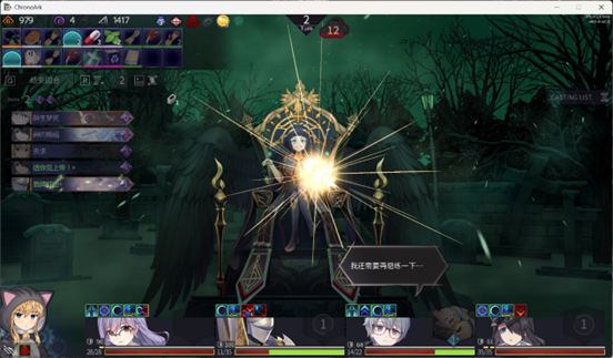 《超时空方舟》不同于《杀戮尖塔》这样的经典rougelike卡组构建游戏,作为『预言少女』,我们并不是独自一人杀穿整片扭曲之地,而是与能力各异的『方舟调查队』的队员一同作战。在游戏中,我们可以招募最多四名队友,通过卡牌技能的形式与敌人交战。二十位队员们拥有各自的能力与卡牌体系,玩家需要让队员们灵活配合,制定最强的策略,以此战胜强敌、启动钟楼。