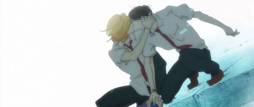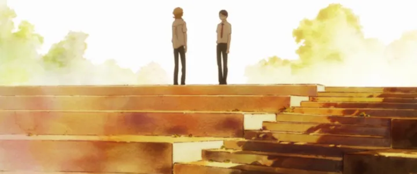 教室中的一见钟情,,对于身为男性却喜欢上另一位男性的纠结与挣扎,恋爱的矛盾,对于未来的打算,剧情走向上只能算是可圈可点,但优秀的演出和分镜却给人不一样的观感,大量的中、远景镜头与线条化的人物舒缓了整部片子的节奏,令你意识到你是在欣赏一部抒情作品而不是充斥打斗的热血片。漫画式的演出:晃动的旁白文字,漫画框分隔的画面,淡白色处理背景,空镜头,留白……你能十分轻松的理解演出的意图,并借此感受到那份细腻的感情。倾倒的柠檬苏打水瓶中翻涌的气泡,伴随夏日的蝉声破碎在心间,少年们细碎的心事四溢在夜色里。
