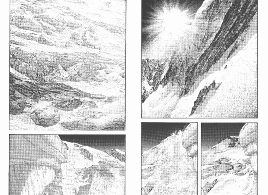 作者在书的最后说,即此,文太郎应该也避不过那一天。3月11…日本山那天开始所面对的困难,他不是也有责任一起去承担?即使多艰苦,也不能够放下背嚢。相信前面会绽放出一朵花。那是日本文学绕不开的,也是直面苦难、直面人之于社会属性的最佳选题。在社会关系与攀登中,文太郎选择了攀登,但社会与攀登从来是纠葛的。坂本真一的画笔镜头,始终聚焦在社会语言里。文太郎为何深陷自我质疑?不过是彳亍于肯定自我追寻的自足价值。少年壮志的宫本堕落到偷走文太郎的全部钱财,初恋的白月光夕实步入风尘无力自持。没有两片相同的雪花,却不约而同地坠落自云端。