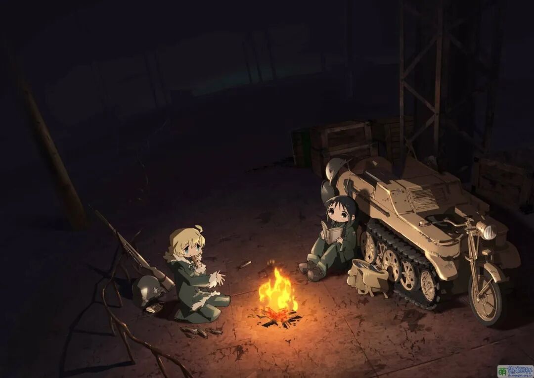 少女终末旅行:动人的反乌托邦物语。讲述的是,在人类文明迎来末日很久以后,仅仅只有两名少女在废墟中乘着爱车Sdkfz 2(Kettenkrad)漫无目的的彷徨的故事。