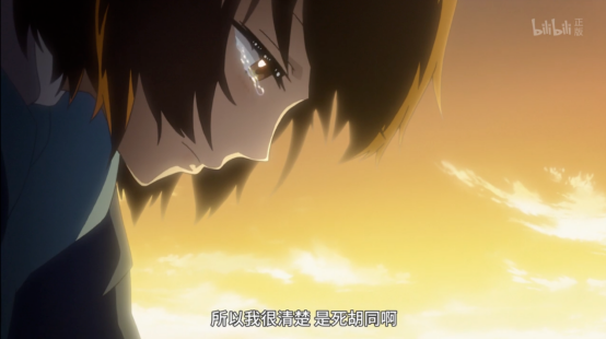 但是,失败的电影节奏并不能盖过此部电影其他的可圈可点之处,那些令二次元们感到尴尬的东西,恰恰是整部电影的核心——电影问了一个无法被搪塞的问题:当悲伤的现实将我们逼入自己的小世界,而又要进一步摧毁它时,我们将何去何从?aura中“中二病”们的命运随着这一残酷而现实的命题而摇摆不定,导演用镜头演奏了这首低沉的协奏曲,并赋予它尽可能高昂的结局。但屏幕前的我们则要扪心自问——彼时的我们,又是如何亲历这苦难到达如今的?