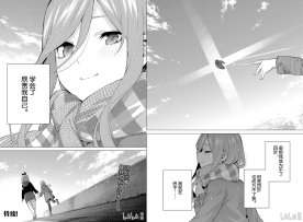 作为一部炒股漫,《五等分》无疑是非常成功的。而在炒股之余,春场老师笔下一个个性格饱满,感情真挚的人物也同样给人留下了深刻的印象。看着这些可爱的少女们为了爱情努力的样子,作为观众的我们也能真切地感受到青春的美好。在一个个有笑有泪的日常故事中,她们一点点成长、变得成熟起来。她们直面过去、克服自己心中的阻碍与性格的缺陷,努力地将自己最好的一面展示给心爱之人,也同时展示给观众,让我们亦能够感受到她们的真心。这份能跨越次元壁的情感无论什么时候都是感人的,可以让人体会到发自内心的温暖,并从中得到安慰、获得前进的力量。