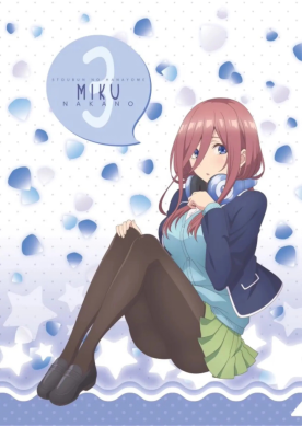 三玖作为《五等分》中人气最高的女主,凭借着自己的颜值与(伪)三无属性收割了一批又一批的阿苇阿伟,股市刚开盘就一路高歌猛进,奠定了难以动摇的位置。她是五姐妹中最早对风太郎产生好感(四叶除外)的人,但同时也是最害羞的人。与一花出于强烈的责任感而不去于表达自身情感不同,三玖的害羞源自她内向的性格与自卑的内心。比起自己的姐妹们,三玖总是给人一种不自信之感,她也一直没有信心与勇气向风太郎吐露自己的真心。在前期少有的几次真心吐露也因为风太郎的直男癌这样或那样的因素没有被风太郎察觉。