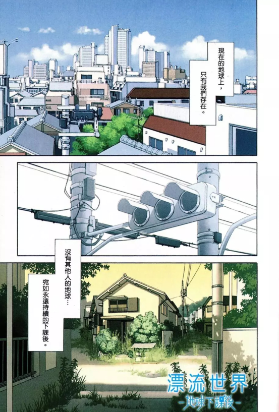 但相较其他作品,《漂流世界 地球下课后》有一种独特的少见的气质。重引用宇野常宽《小人物的时代》导言:“可是,在那天,是不是真的会有带着火红尾巴的导弹,飞跃上空?那个时候,大概连神也不能帮我们。对的,世界末日会突然降临。(中略)也许在世界的最后一天,我们还会在Pia买票系统预定下个月芝浦Ink的演唱会吧。也许在世界的最后一天,我们还是会在日历下标下下次大减价的日子。也许在世界的最后一天,我们还是会慢慢放下刚刚买回的Adidas。”“丰盛与和平但沉闷的消费社会”依然终结,但在本作中,日常生活在末日之后依然延续了下来。