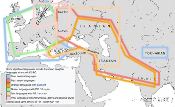 公元前 500 年的印欧语系以及选定的同音词。(小破~commonswiki / CC BY-SA 3.0 )