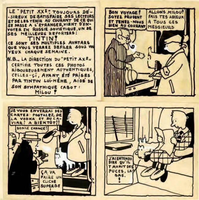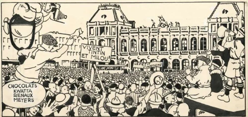 《丁丁历险记》仅仅依靠第一篇故事,便在比利时收获了许多粉丝。《二十世纪小伙伴》杂志甚至雇佣了一名演员和一条狗,在布鲁塞尔北站复刻了一场“三次元”版的丁丁逃离苏联回国名场面。