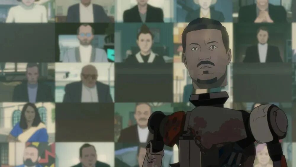 这部电影加入了许多值得深入刻画的议题,例如人类与 AI 智慧的共生、上传意识脱离肉体的新生命形态、机器人取代人类造成大量失业、大型垄断企业对普通人生活的控制和渗透。可惜的是,这些议题在电影中全部变成了“蘸料”,每一个都仅仅浅尝辄止,使得电影传递出的内涵变得零散和破碎。