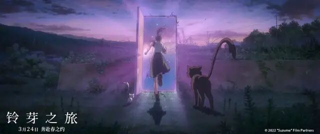 《铃芽之旅》这个名字似乎一开始就充满了争议,说是一部关于旅途的电影,但公路片式的剧作架构并未带来对等的享受旅途的悠闲心情,其叙事的牵引力反而比新海诚以往任何一部作品都要单一、明确且强烈:闯关式的阻止灾难的发生,去到日本各地,在各式各样的“门”面前,在怪物发动袭击重新封印住“门”。
