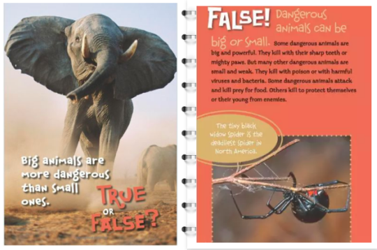 比如下面这页,体型庞大的动物比小型动物更危险,真的还是假的呢?