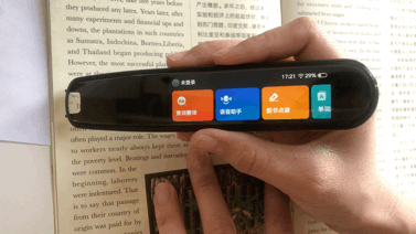 我当时想不到,现在居然有了词典笔这么个好玩意儿。它比普通的签字笔大不了多少,用笔头一扫,就能轻松翻译出单词或句子,小屏幕上显示出翻译结果,据说速度是查纸质词典的15倍!