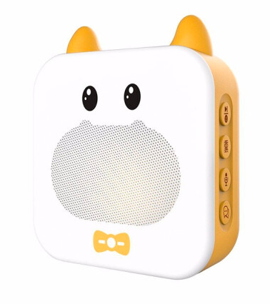 乍一看,这个东西就是一个可爱的小音箱,但它可不只音箱那么简单,你可以把它当成一个故事机,孩子上放学路上,去公园,随时随地都可以用它听音频,磨耳朵。
