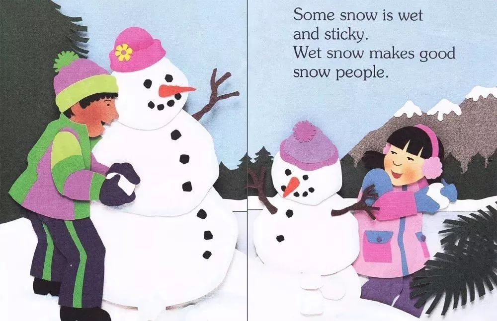 雪地是从事冬令活动的最佳场所,滑雪者(skier)、单板滑雪者(snowshoe hiker)都参与其中。透过故事带领,孩子有机会穿越当下的时空环境,认识未曾拜访的国度。最后,作者还用剪纸教导小读者,如何剪六边形雪花图案,感受雪花片片的美丽。