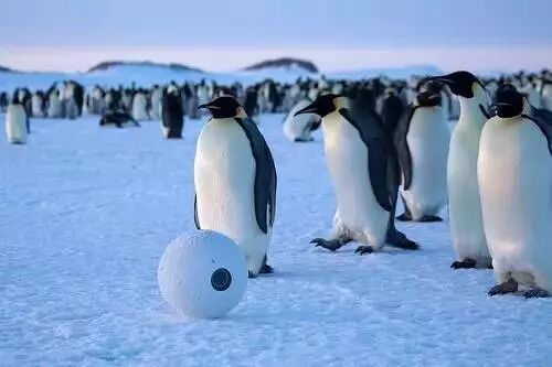 原来,这是BBC团队为了记录企鹅真实的生活,伪装了一批“特务”spycam(就是下面图里的这个球) 混入了企鹅的队伍。