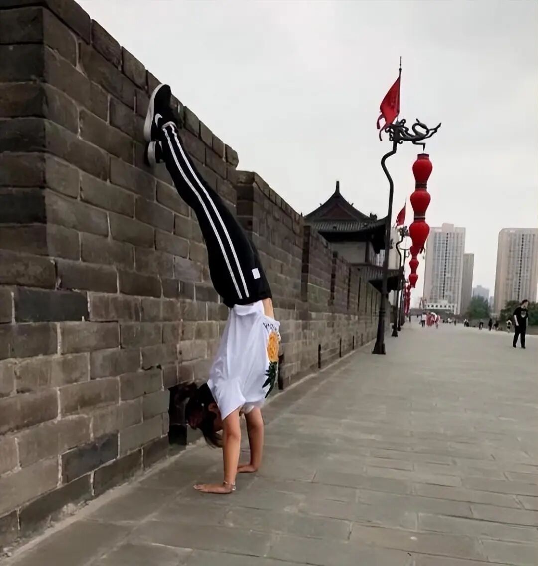 就这样,2016年11月,我开始练习倒立,包括分解练习手臂力量、核心,克服心理压力,找了健身教练辅助练习、反复看视频……3个月后,慢慢我能做到靠墙头倒立、肘倒立、6个月后基本就做到了靠墙手倒立。