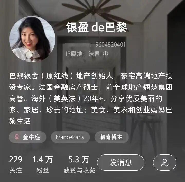 我是银盈,四川人,今年40+岁,是巴黎奢侈房地产界的创业者。