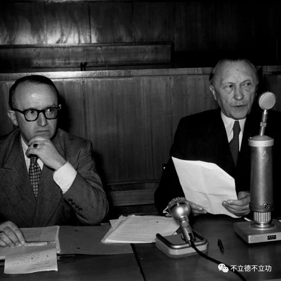 西德总理阿登纳(右)与哈尔斯坦教授(左)