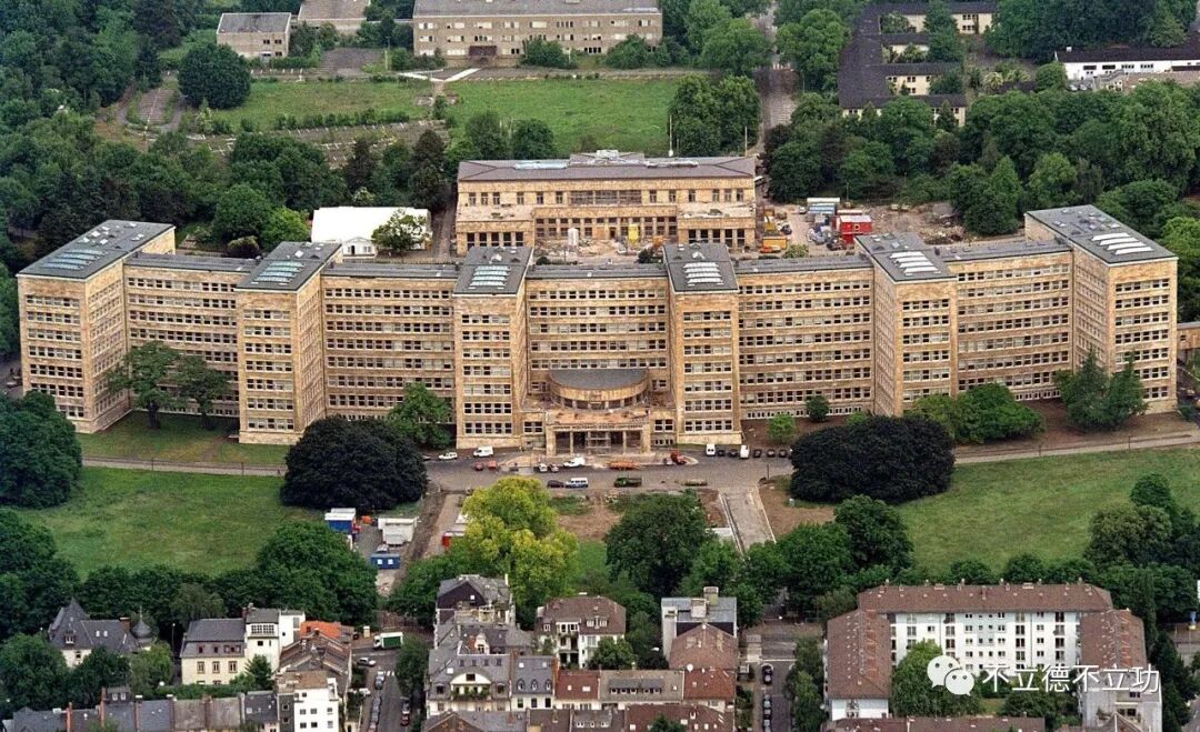 Farben的这幢总部办公大楼却几乎安然无恙,这似乎全然不符合盟军战略轰炸的逻辑。说法之一就是,美军从一开始就希望保存这一建筑群作为日后的总部。于史有实证的是,美军真的是把他们在德国的占领军总部设在这幢大楼里。进进出出的是艾森豪威尔、布莱德雷、巴顿这样的名将,光是这三个人就已经有13颗星了——因为布莱德雷那时还没有获得他的第5颗星,所以不是14颗。