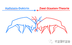 其实,内涵深厚、外延广阔的官方表述都是微言大义的,表面波澜不兴,实则静水流深。古今中外,概莫如此。自德意志联邦共和国(当时简称为西德)1949年建国以来,西德政府始终坚持,德意志民族与国家暂时处于分裂状态,只有西德才是德意志国家的法统延续,所以只有西德才具备国际法上的国体资格,而西德是整个德国的唯一合法代表。以此推知,东德不应当被承认为国家。“哈尔斯坦主义”所表述的“如果”与“后果”,正是植根于这一系列要义的基础之上。