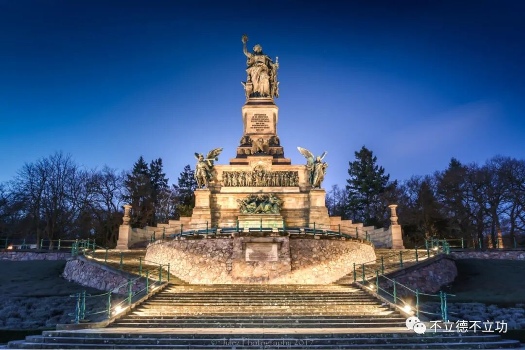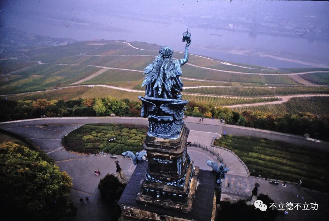 日耳曼女神像居高临下面对莱茵河,目光则是直视西方。表情上丝毫没有战争胜利的欣喜骄矜状,而是十足的警惕,犹如时刻需要重新面对从西方滚地掩杀过来的危险那样,更像是在执守前哨、遥望预警。即便这个纪念碑的树立,是在普鲁士取得击败法国的大胜,完成德意志民族国家统一的背景下,日耳曼女神像“莱茵河守望(Die Wacht am Rhein)”所反映的却是整个德意志民族面对西部强邻法兰西的惊惧和戒备,延续了满格的敌意。