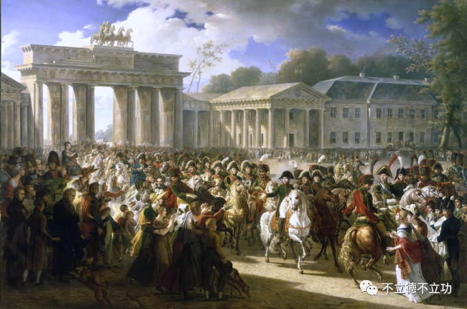 油画:拿破仑在柏林勃兰登堡门前的入城式