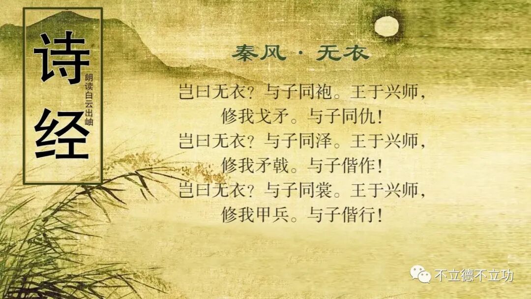 有意思的是,在《诗经·秦风·无衣》中就有“岂曰无衣?与子同袍……与子同泽”这样的诗句,也就是“袍泽”一词的出处。以此观之,若要论西方人此一标准、彼一标准般热衷的知识产权,以春秋时期的诗经对比公元后四世纪的圣马丁传说,是不是有点太“欺负人”了?无论如何,“同袍”背后,其人文意义与人道情怀的确是共通的——是为人性,面对不断倒退而始终不灭人类进步之希望的人性!