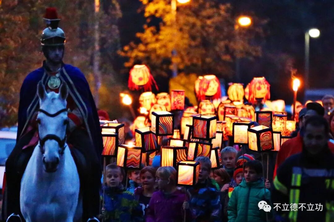 圣马丁节的另一项习俗是在晚上的火炬巡游,原本很可能是烤鹅入肚之后的逍遥游,名义上则是感恩丰收的告慰四方。为感恩而举火游行,其历史的久远甚至是堪比出自凯尔特人风俗的万圣夜(Halloween)。随着历史的逐步演变,如今圣马丁节的灯火游行成为了专属孩子们的节日。11月11日晚上,在很多德国市镇的街道上,都有一骑罗马军官装束的“圣马丁”引导着孩童们一路点灯、举火。播撒着欢歌笑语之余,不知这些孩子们是否体会何其有幸?即便同样是在欧洲的土地上——地理概念上是从大西洋到乌拉尔——也并非只有火树银花。