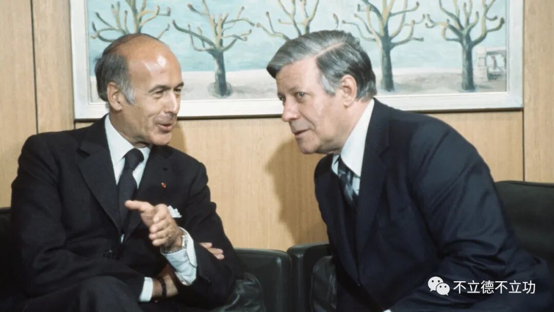 然而,任何一个在外交上有所成就的联邦总理都从来不会在“大西洋主义”和“戴高乐主义”之间孤注押宝,总是双轨推动、反复平衡。施密特在任期间,差不多与他同进退的是1974年到1981年间任法国总统的是瓦莱里•吉斯卡尔•德斯坦(Valéry Giscard d’Estaing)。两位元首、首脑都是财政部长出身,以共同的经济理念为基础,很快又在外交、国防领域的议题中达成广泛的一致。两人虽然互不通对方的语言,但都掌握了流利的英语,后人从他们离任多年后的回忆录才知晓,很多划时代的大手笔:比如作为“欧元”前身的欧洲统一货币第一步的“欧洲货币单位/ECU”、从英美德法首脑会谈机制到西方一年一度的西方七国首脑会谈,都是施密特和德斯坦屏退左右,用英语密谈出来的。
