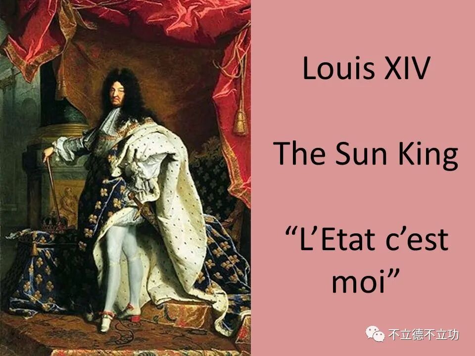 分裂之后的西法兰克王国就是现代法国的前身,在那里,王室从一开始就享有比较超然的主导权,虽然出现过几次王族的易手,但是因为王室对于权柄的牢牢掌控,权力的交接也就自然而然成为了王室之外不得与闻的专属,所以就没有世袭制之外的变量余地。也只有在法国,才有了逐渐强化的王权,直到法国国王具有专制君主的绝对权威。其登峰造极是人称“太阳王”的法国国王路易十四,他有一句名言“L'état,c'est moi.”没有比这句话更好翻译成中文的了,无论语境、语义和语气,简直没有一丝的走样:“朕即国家。”